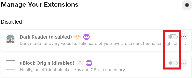 Before opening a new issue we require that you read the FAQ in full and that you check out the settings page. We also ask you to look for existing issues that address your problem, before opening redundant ones. Finally, we also appreciate when users try to reproduce their issues in a new profile to make sure their extensions and settings are not the root cause of the issue.
